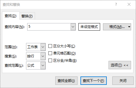 使用查找功能时,除了常规的查找下一个和查找全部选项外,还有更多选项。通过指定这些选项的值,使查找功能更丰富。其他选项具体如下: