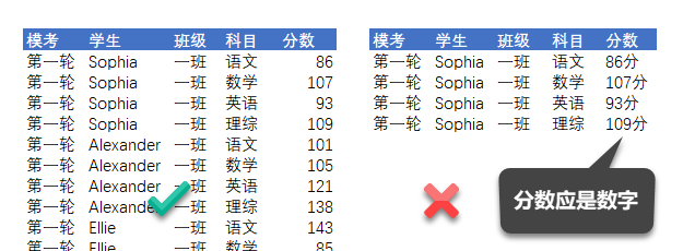 规范的源数据是数据透视表的核心基础。只有源数据符合一定的规则,数据透视表才能发挥其强大的功能。一个符合标准的源数据应具备以下 4 个特点: