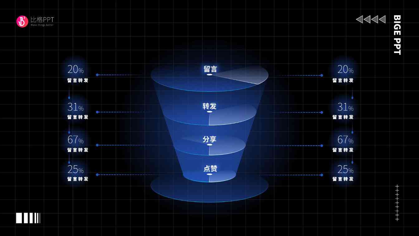1、这是一个漏斗图,很常见,但估计用到的地方也不少,尤其是运营和影响方面,有这么一个图放在PPT里,里面能盘活这一页PPT;