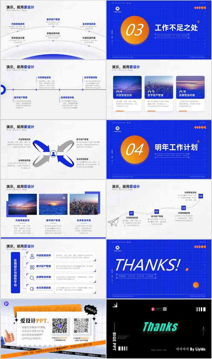 1、整体设计很商务,很工作场景;不管是排版还是配色,都适合打工人,适合工作计划、年终总结、工作汇报等等;